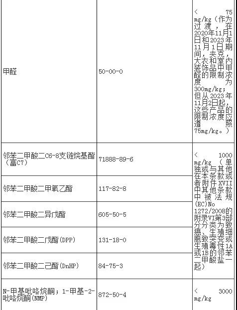 備注:上述要求不影響REACH法規附錄XVII或其他應用于歐盟法律法規中所規定的任何更嚴格的限制要求。