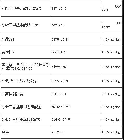 REACH法規附錄XVII中關于紡織及鞋類產品的CMR限制物清單