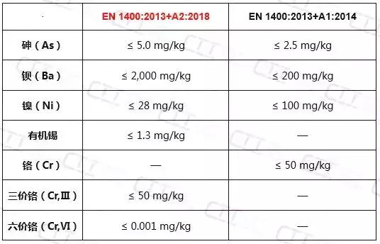 從上圖可以看出,新標(biāo)準(zhǔn)和舊標(biāo)準(zhǔn)相比,可溶性砷和可溶性鋇的限值變得寬松許多,而對(duì)可溶性鎳的限制卻縮小至原來(lái)的限值的四分之一,因此之前檢測(cè)合格的產(chǎn)品在新標(biāo)準(zhǔn)的要求下是屬于不合格的,那么相關(guān)企業(yè)需注意生產(chǎn)工藝的改進(jìn),確保產(chǎn)品能符合新規(guī)的要求。